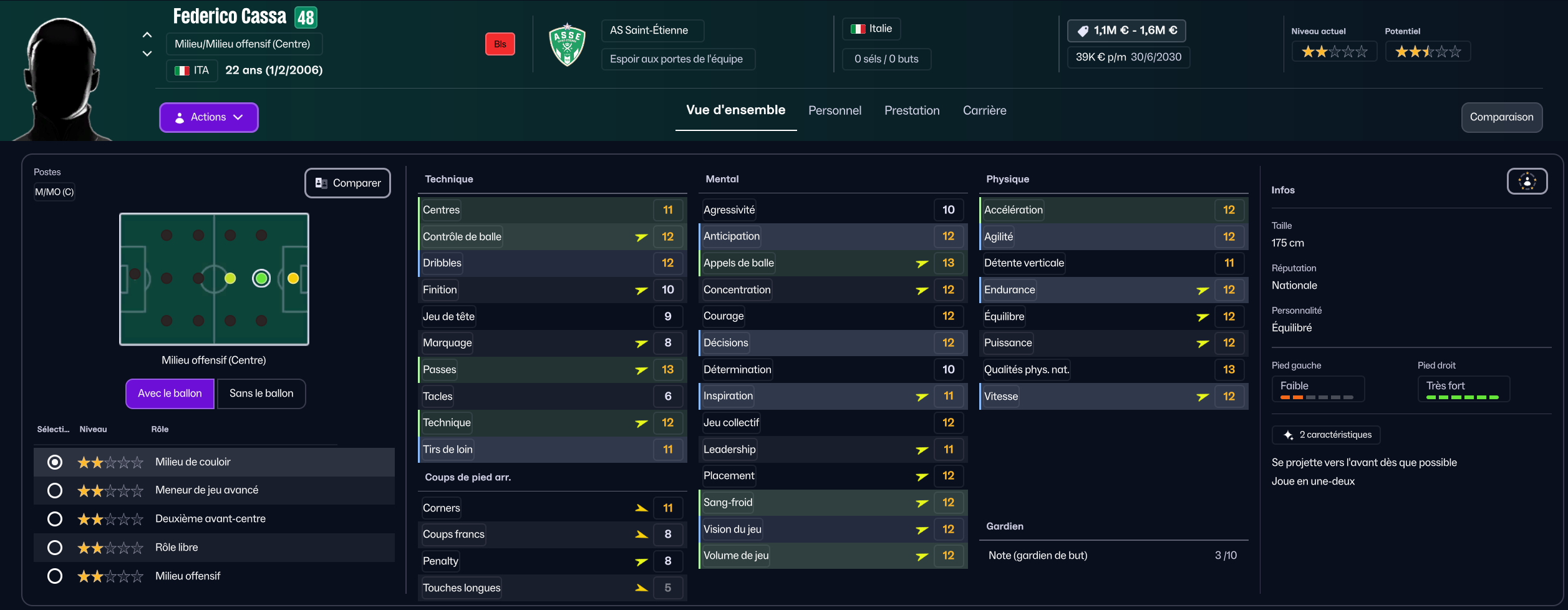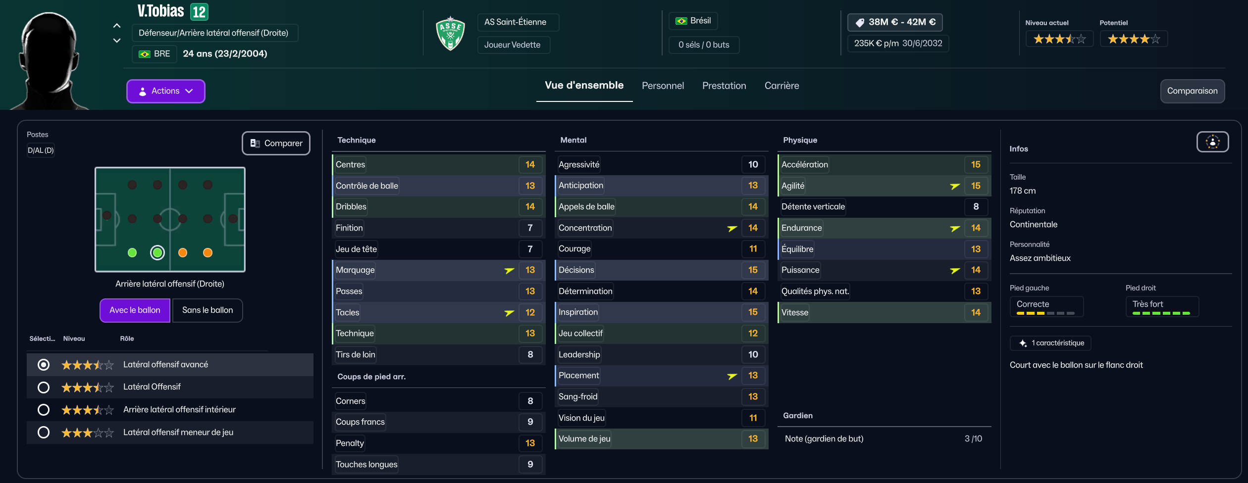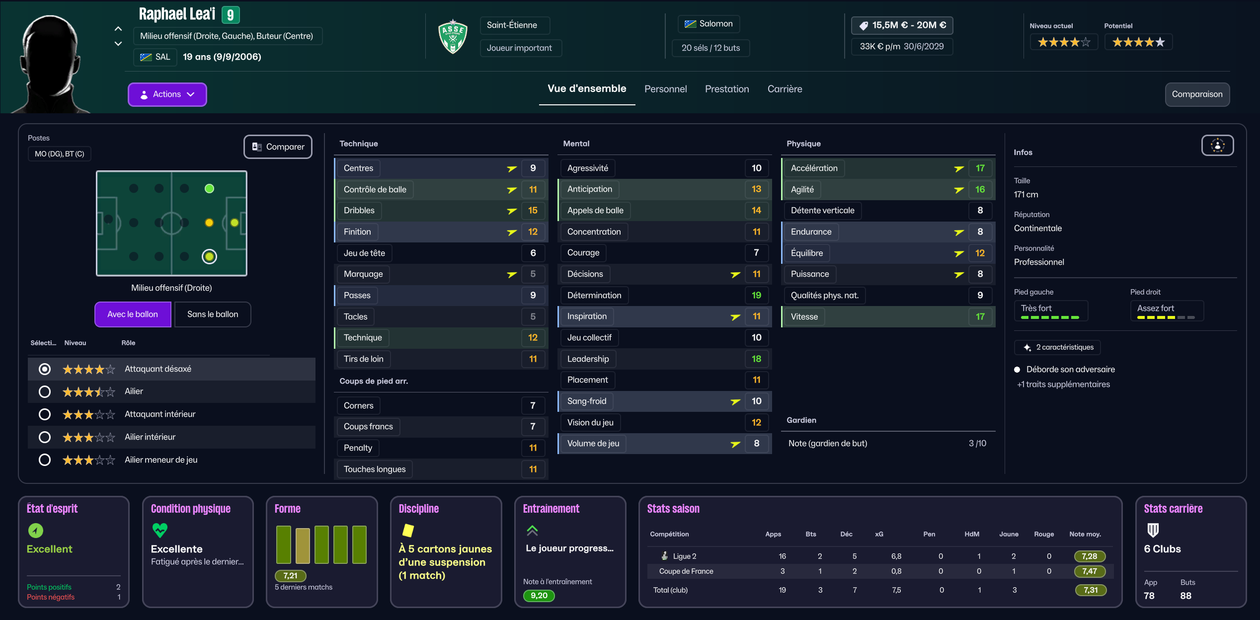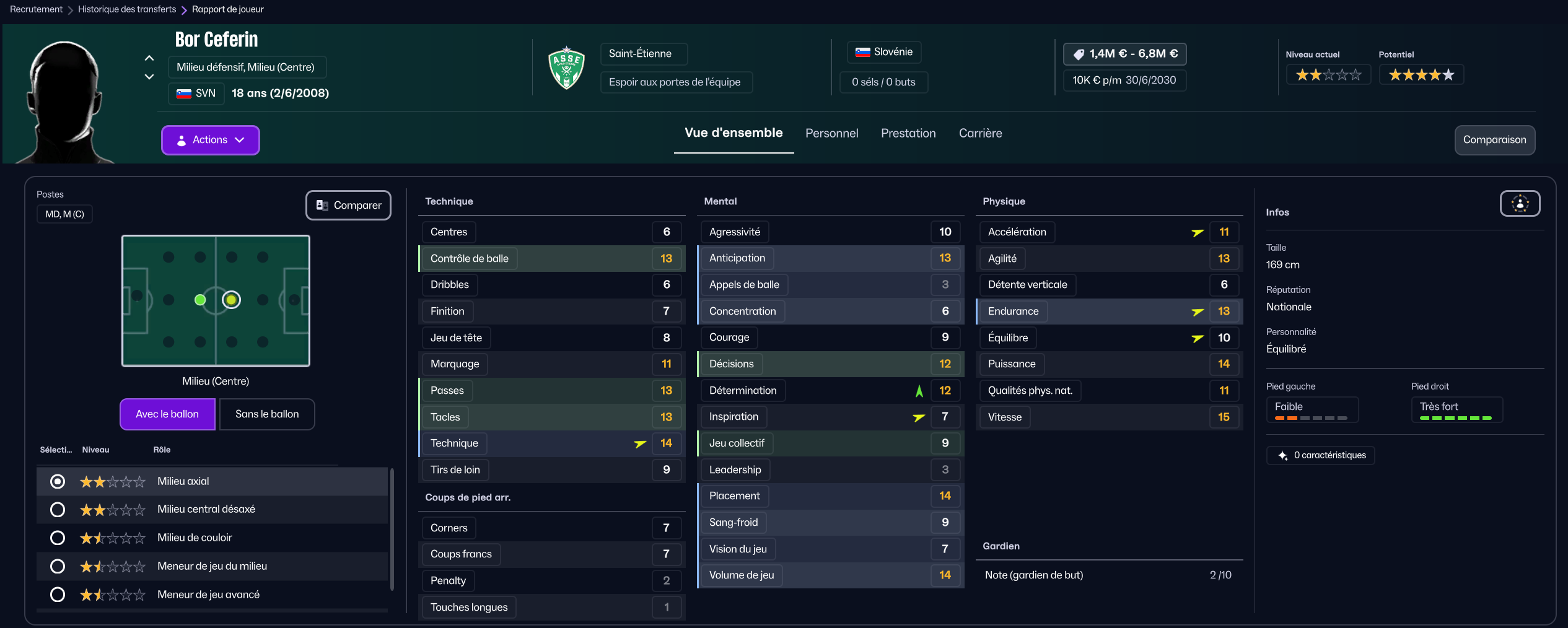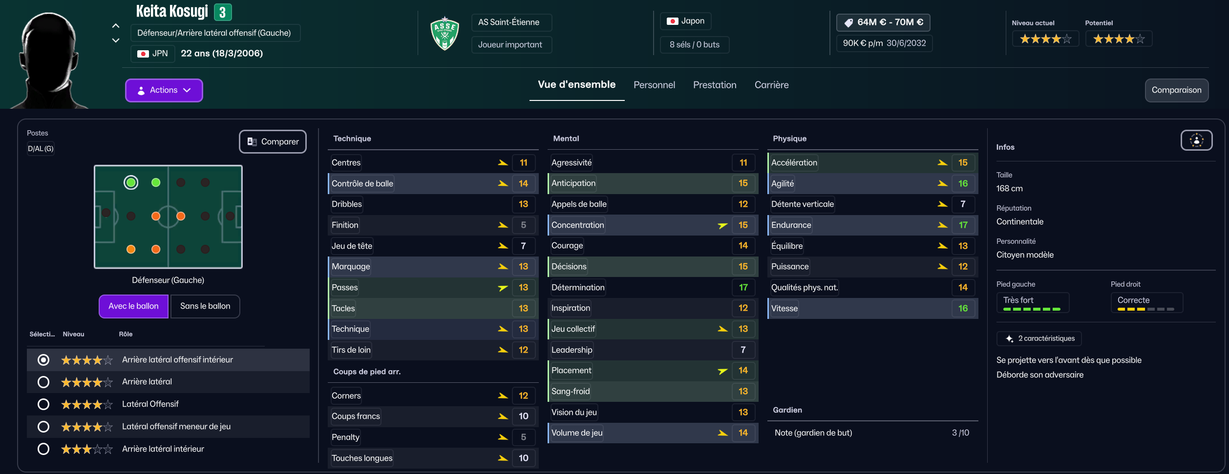 Dernier renfort offensif mais pas des moindres, j’ai mis seulement 850k à Maribor pour la pépite slovène Niko Grlic qui sera titulaire sur l’aile gauche, en rotation avec Davitashvili.