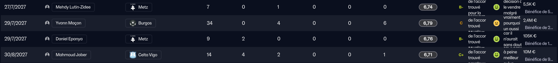 Et la promesse faite à @Bubaji a du être enterinée au moment ou j’ai pu faire le coup de l’année, sur la liste des transferts, pour 2.5m€ en toute fin de mercato d’hiver.