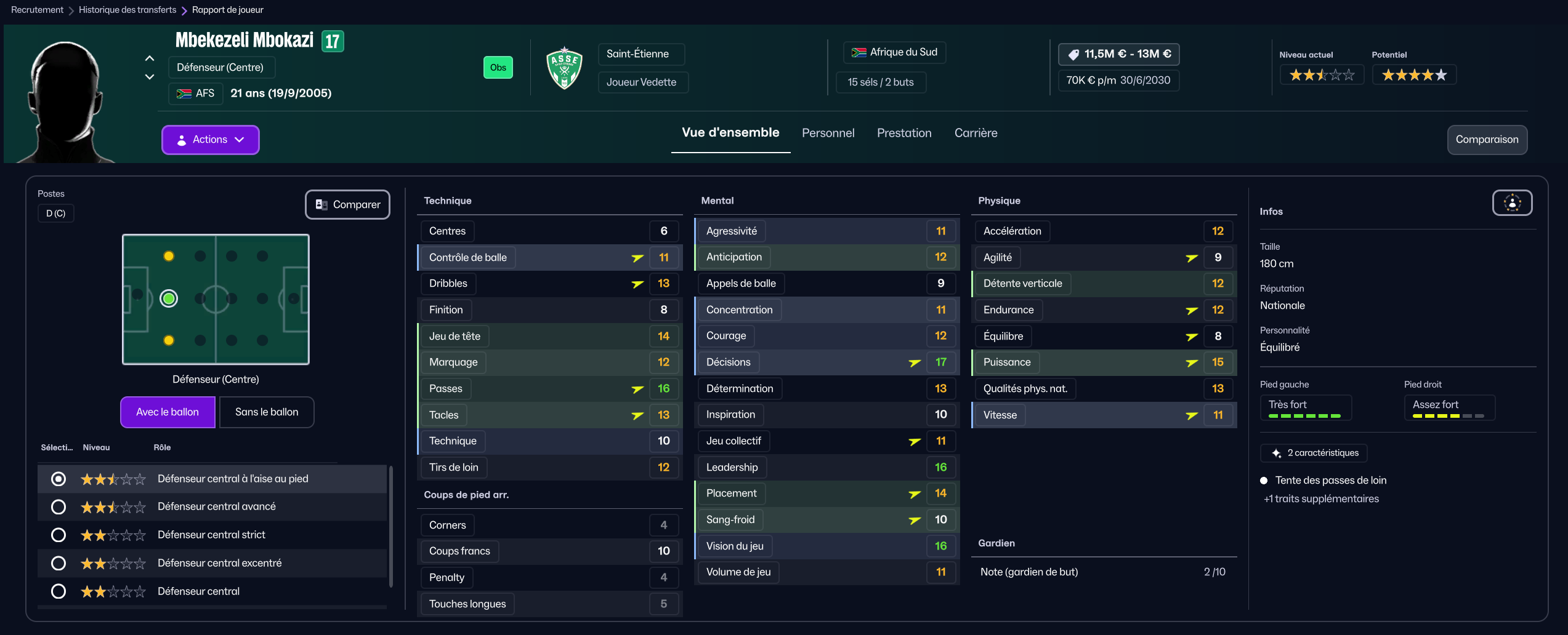 Puis pour 400k j’ai arraché Mbekezeli Mbokazi aux Orlando Pirates, pour en faire un titulaire en puissance !