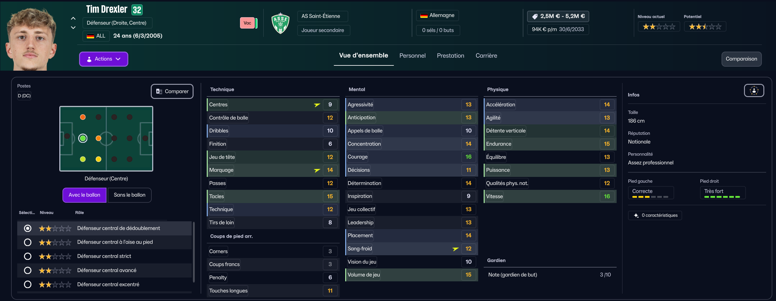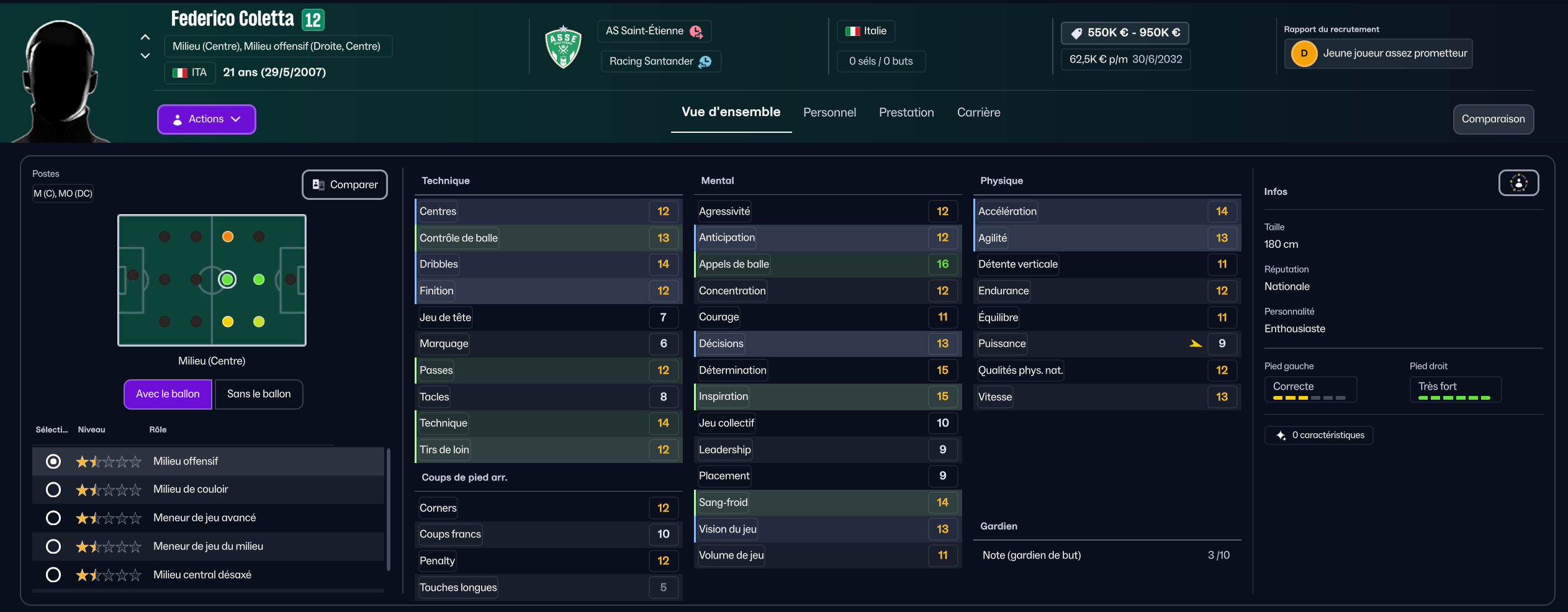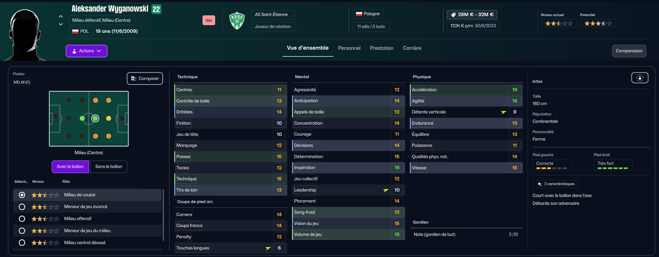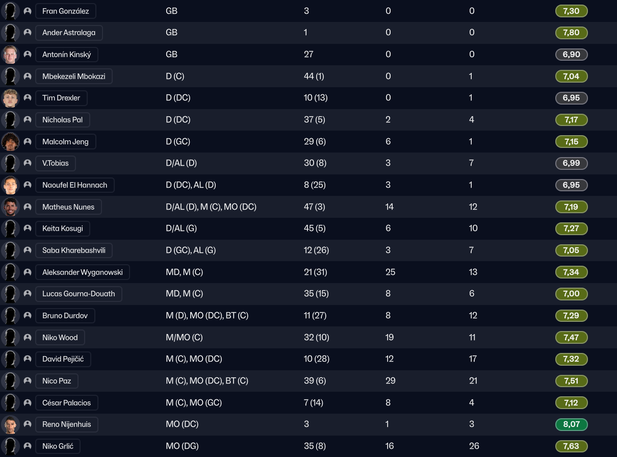 Dernier renfort offensif mais pas des moindres, j’ai mis seulement 850k à Maribor pour la pépite slovène Niko Grlic qui sera titulaire sur l’aile gauche, en rotation avec Davitashvili.