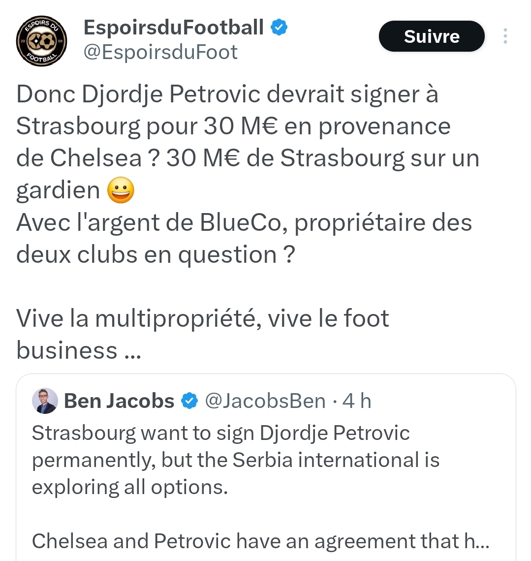 En plus de ça des treansfert a 30 m en France hors psg je suis mĂȘme pas sĂ»r quâil y ai plus de 7-8 et encore moins si on sort OM et Monaco de lâĂ©quation