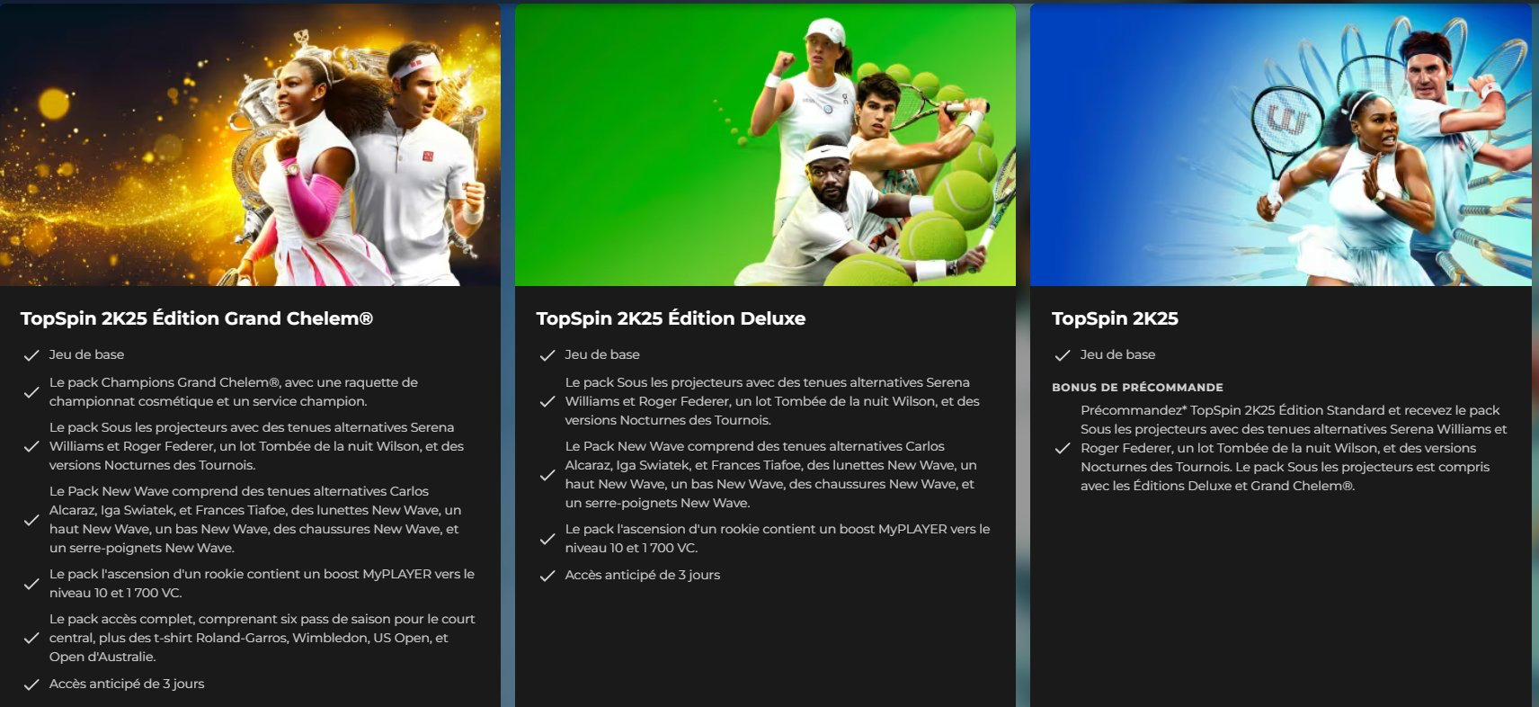 Ah mais pour moi TopSpin câest clairement ça hein. Rien Ă foutre des matchs entre stars du Tennis. Je veux crĂ©er mon perso et me faire une carriĂšre. Donc les graphismes sur les gros plans osef, le principal câest le gameplay et si ça tient la route perso jâachĂšte.