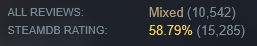 Mais si on regarde les joueurs qui ont dĂ©jĂ mis au moins 8h et ont payĂ© le jeu (test en Anglais/Francais uniquement, ca Ă©vite les BrĂ©siliens et Chinois qui ont la facheuse tendance de reviewbomb pour differentes raisons) â