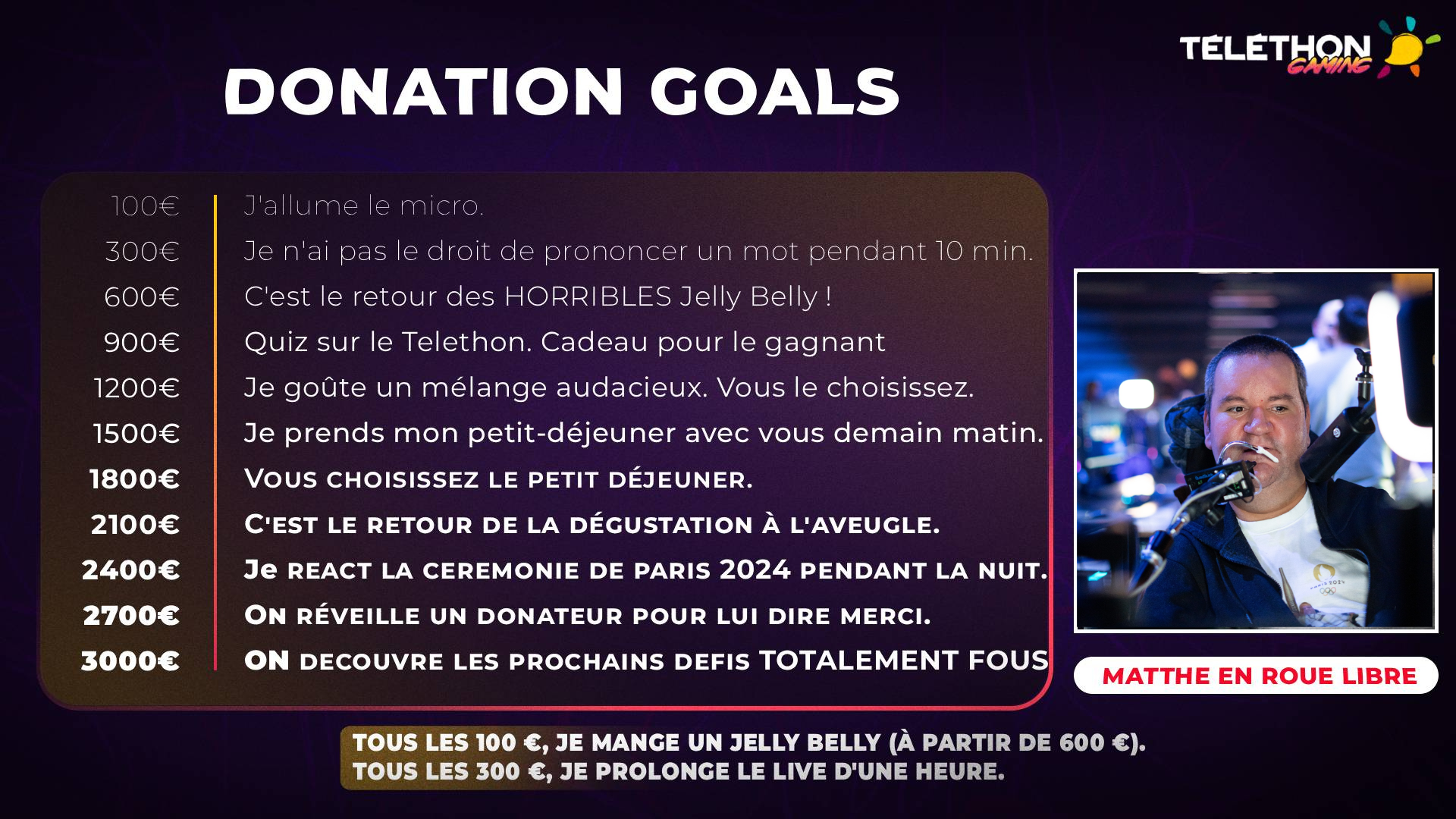 Cette année, la durée du stream dépendra de votre générosité. Tous les 300 euros sur la page de collecte et ce sera une heure de live en plus.