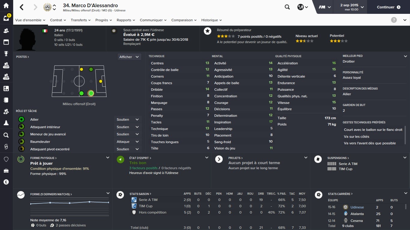 Petite partie avec l’Udinese présidé par Pozzo qui possède également Watford angleterre et Grenade en Espagne. Le club possède l’un des meilleurs réseau de recruteur sur lequel je pourrais m’appuyer pour construire la meilleur équipe, je continuerais donc sur la stratégie d’achat / revente.