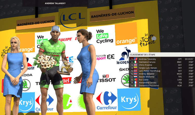 Première victoire d’étape pour Cannondale sur ce tour. Au classement du maillot vert, Ramunas est à 10 petits points de Cavendish, de quoi donner de la suite dans les idées.