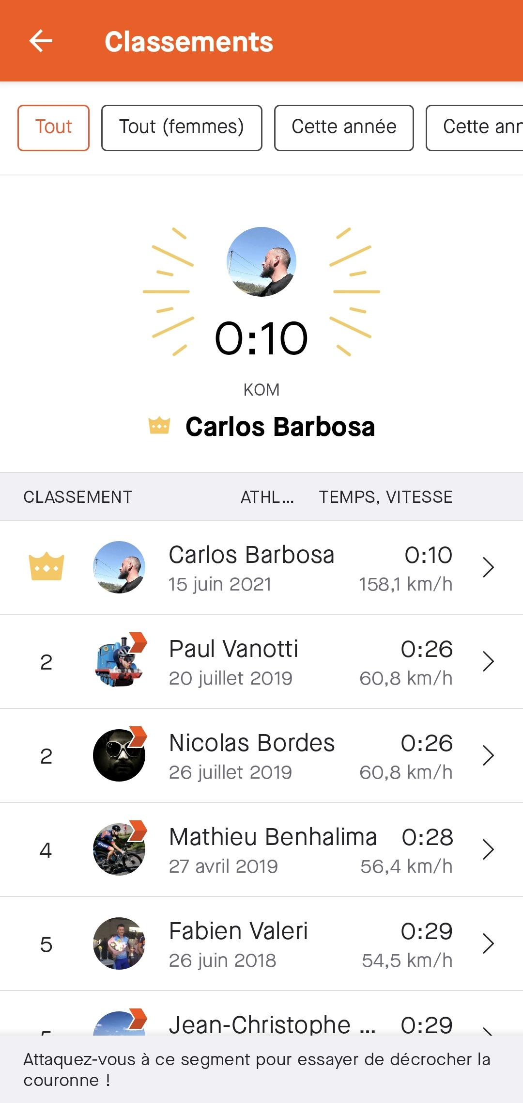 Jâai trouvĂ© un segment ou le KOM est Ă 160km/h.