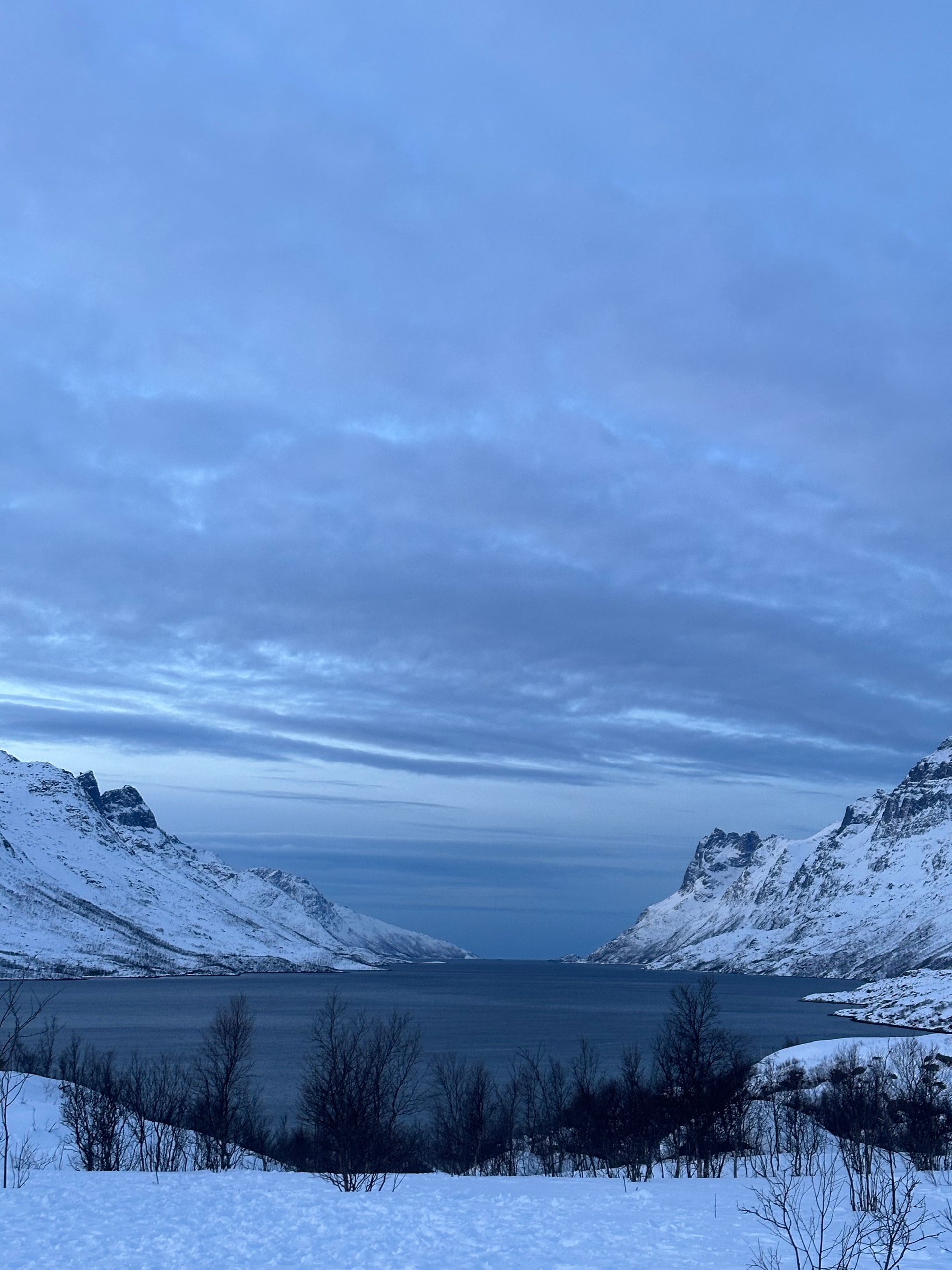 Ce matin, j’ai fait une visite de l’île Kvaløya et ses fjords, c’était vachement sympa !